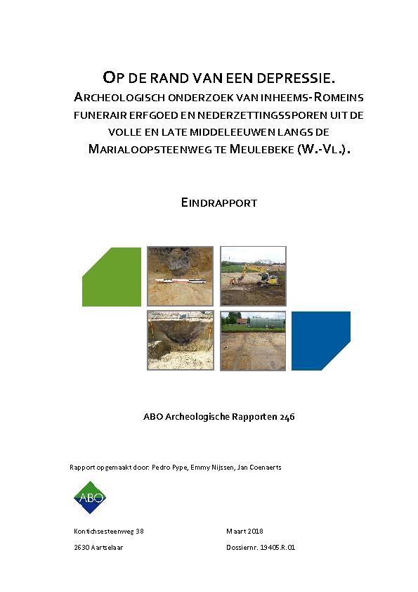 | Titel: | Op de rand van een depressie. Archeologisch onderzoek van inheems-Romeins funerair erfgoed en nederzettingssporen uit de volle en late middeleeuwen langs de Marialoopsteenweg te Meulebeke (W.-Vl.). |