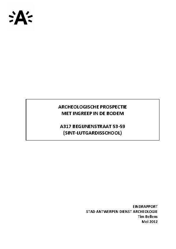 | Titel: | Begijnenstraat 53 -59 (Sint-Lutgardisschool). Archeologische prospectie met ingreep in de bodem. Eindrapport. |